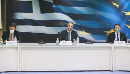 Την εξειδίκευση του πακέτου στήριξης 1,1 δις κάνουν οι υπουργοί Οικονομικών Χρήστος Σταϊκούρας, Περιβάλλοντος και Ενέργειας Κώστας Σκρέκας, Αγροτικής Ανάπτυξης και Τροφίμων Γιώργος Γεωργαντάς και ο αναπληρωτής υπουργός Οικονομικών Θόδωρος Σκυλακάκης.
