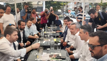 Με τον Πρόεδρο του ΠΑΣΟΚ - ΚΙΝΑΛ Νίκο Ανδρουλάκη συναντήθηκε σήμερα το μεσημέρι ο Δήμαρχος Θεσσαλονίκης Κωνσταντίνος Ζέρβας στην πλατεία Μικρασιατικού και Θρακικού Ελληνισμού, στην Τούμπα.
