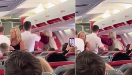 Όπως φαίνεται στο βίντεο, το μέλος του πληρώματος προσπαθεί να ηρεμήσει τη γυναίκα. Ο αεροσυνοδός του Jet2 φαίνεται να προσπαθεί να συγκρατήσει τα χέρια της γυναίκας.