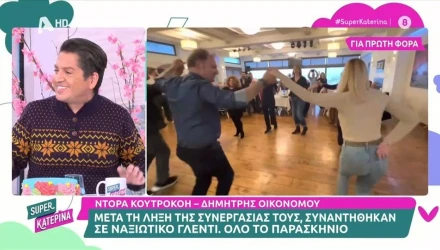 Όλα αυτά φαίνεται πως ανήκουν στο παρελθόν, καθώς όπως έδειξε η εκπομπή «Super Κατερίνα», η Ντόρα Κουτροκόη και ο Δημήτρης Οικονόμου διασκέδασαν μαζί σε ναξιώτικο γλέντι.