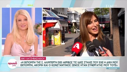 Η Βίκυ Χατζηβασιλείου ερωτήθηκε και σχολίασε τη νέα εκπομπή της Σοφίας Αλιμπέρτη: «Έχει τις ίδιες στήλες ακριβώς με τη δική μου εκπομπή. Μη σου πω ότι έχει και τον ίδιο καλεσμένο, γιατί ο Κωνσταντίνος Ξένος ήταν συνεργάτης μου τότε», αφήνοντας τις αιχμές της.
