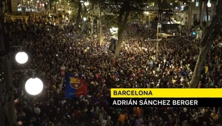 Οι οπαδοί των Καταλανών συγκεντρώθηκαν στην πλατεία Κανελέτες για να πανηγυρίσουν το 27ο πρωτάθλημα στην ιστορία της Μπαρτσελόνα, χωρίς να ξεχάσουν την κόντρα τους με την Ρεάλ Μαδρίτης.