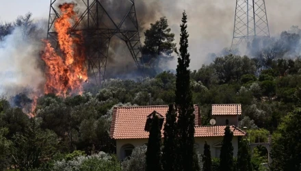 Χάος επικρατεί αυτή την ώρα στο μέτωπο του Κουβαρά καθώς η φωτιά έχει ήδη φτάσει στο Κτήμα Μελισσουργού στα Καλύβια και συνεχίζει να μαίνεται ανεξέλεγκτη.