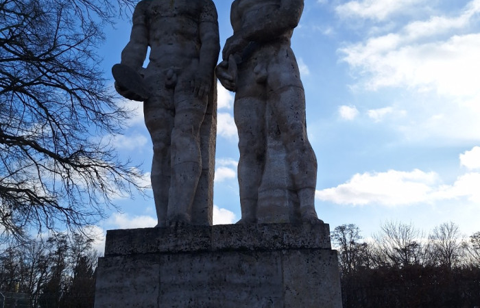 Δίπλα στο Olympiaastadion, υπάρχει η Πύλη του Μαραθώνα, η οποία σηματοδοτεί την αφετηρία για τους αγώνες μαραθωνίου κατά τη διάρκεια των Ολυμπιακών Αγώνων του 1936. Εκεί υπάρχει ένα άγαλμα με τίτλο «Discobolos», το οποίο απεικονίζει ένα δισκοβόλο σε κίνηση. Το άγαλμα είναι ένα αντίγραφο της αρχαίας ελληνικής γλυπτικής του Μύρωνα, που αντιπροσωπεύει την εξιδανικευμένη μορφή και τον αθλητισμό που γιορτάζεται στον αρχαίο ελληνικό πολιτισμό. Η τοποθέτηση του αγάλματος στην Πύλη του Μαραθώνα αποτίει φόρο τιμής στην προέλευση του μαραθωνίου αγώνα στην αρχαία Ελλάδα και αντανακλά τα ιστορικά και πολιτιστικά θέματα που υφάνθηκαν στους Ολυμπιακούς Αγώνες του 1936.