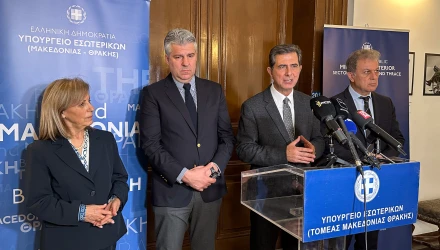 Η εξέλιξη των περιφερειακών σχεδίων ανάπτυξης στη Βόρεια Ελλάδα και η προώθηση όλων των θεμάτων, που αφορούν στην Μακεδονία και τη Θράκη βρέθηκαν στο επίκεντρο της σύσκεψης εργασίας με την Περιφερειάρχη Κεντρικής Μακεδονίας, Αθηνά Αηδονά, τον Περιφερειάρχη Δυτικής Μακεδονίας, Γιώργο Αμανατίδη, αλλά και τον Περιφερειάρχη Ανατολικής Μακεδονίας και Θράκης Χριστόδουλο Τοψίδη, που συγκάλεσε ο Υφυπουργός Εσωτερικών (Μακεδονίας και Θράκης) Κωνσταντίνος Π. Γκιουλέκας, στο Διοικητήριο της Θεσσαλονίκης, σήμερα, Παρασκευή, 10 Ιανουαρίου 2025.