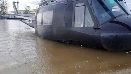 Τραγικές είναι οι εικόνες από την βάση ελικοπτέρων στο Στεφανοβίκειο, οι οποίες δείχνουν μεταφορικά ελικόπτερα Bell UH-1 Iroquois (ανεπίσημα Huey) της Aεροπορίας Στρατού, να έχουν βουλιάξει στο βυθό του θεσσαλικού κάμπου.