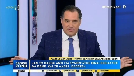 Ο υπουργός Ανάπτυξης και Επενδύσεων, Άδωνις Γεωργιάδης μίλησε στην εκπομπή Πρωινή Ζώνη του Action24 σχετικά με το ενδεχόμενο τρίτης κάλπης.