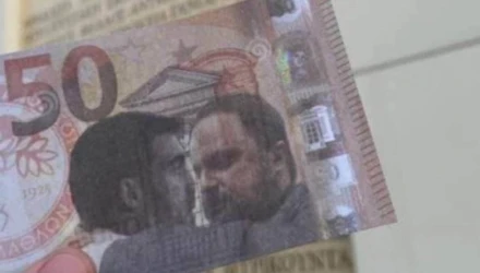 Ωστόσο δεν πρόκειται για... απλά 50ευρα, αλλά κάτι πιο σύνθετο. Τα συγκεκριμένα απεικονίζουν τους Σωκράτη Παπασταθόπουλο και Βαγγέλη Μαρινάκη δίπλα δίπλα και πίσω τους το σήμα του Ολυμπιακού. Προφανώς και πρόκειται για πλαστά χρήματα, τα οποία αναμένεται να κάνουν την εμφάνιση τους και εντός του γηπέδου. Δείτε την χαρακτηριστική φωτογραφία: