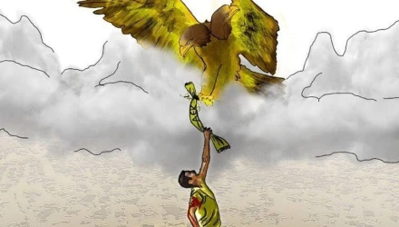 Όπως διακρίνεται στο συγκλονιστικό γραφικό, ένας άντρας που αιμορραγεί στο χέρι, (όπως ακριβώς ο άτυχος Μιχάλης) που τραυματίστηκε κρατά το κασκόλ της ΑΕΚ, της αγαπημένης του ομάδας. Ταυτόχρονα το κασκόλ κρατάει κι ένας δικέφαλος αετός ο οποίος πετάει ψηλά πάνω από τα σύννεφα και παίρνει μαζί του τον Μιχάλη... από τη Νέα Φιλαδέλφεια στον ουρανό.