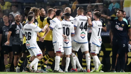 Ο Φωτιάς έδειξε κίτρινη κάρτα στους δύο ποδοσφαιριστές, η φάση εξετάστηκε από το VAR για πιθανή κόκκινη κάρτα στον επιθετικό της ΑΕΚ, όμως, ο διαιτητής παρά την on field review εξέταση της φάσης επέμεινε στην αρχική του απόφαση.