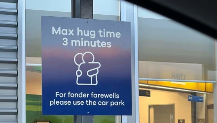 Το αεροδρόμιο Ντουνεντίν στη Νέα Ζηλανδία βάζει χρονικό όριο στις αγκαλιές αποχωρισμού, καλώντας τους επιβάτες να κατευθυνθούν στο πάρκινγκ για πιο θερμές αγκαλιές.