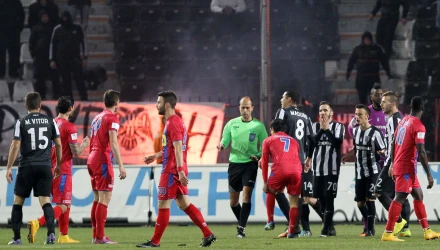 Το πρώτο «μήνυμα» ήρθε άμεσα και αστραπιαία από τον Δελφάκη (διαιτητής περιορισμένων δυνατοτήτων, αλλά και απόλυτα αφοσιωμένος στο «σύστημα» κι επίλεκτο μέλος της ερυθρόλευκης «κομπανίας» της ΚΕΔ). Ο «γείτονας» (από την Αρκαδία)…του κυρίου Μποροβήλου διαιτητής έδειξε από την αρχή αποφασισμένος να τηρήσει την καθιερωμένη πλέον διαδικασία του ψαλιδίσματος των ελπίδων του ΠΑΟΚ και της αποκαθήλωσης του από την πρώτη θέση της βαθμολογίας. Θέση η οποία ως γνωστών ανήκει…(γκαγκστερικό δικαιώματει) σε άλλη ομάδα. Το δολοφονικό τάκλιν του Μητρόπουλου με το καλησπέρα στο βραδινό παιχνίδι…και η απίστευτη απάθεια (;) που έδειξε ο Αρκάς ρέφερι για όλους όσους γνωρίζουν το χώρο της διαιτησίας, αλλά και όσα συμβαίνουν σε επίπεδο εξαρτήσεων μεταξύ συλλόγων και διαιτητών δεν αποτελούσε ένα απλό «μήνυμα», αλλά αυτή την ίδια την επιβεβαίωση του φόβου για όσα πιθανολογούσαν όλοι ότι θα ακολουθήσουν. Και αυτό αποδείχθηκε επίσης πολύ σύντομα με το πέναλτι – φάντασμα που ανακάλυψε ο κύριος Δελφάκης στην βουτιά του Κολοβού, όσο και με τα αλλεπάλληλα εξωφρενικά προστατευτικά σφυρίγματα για τους Αθηναίους σε ολόκληρη τη διάρκεια του πρώτου ημιχρόνου. Ο Αναστασιάδης και οι παίκτες του με τα όποια προβλήματα που είχαν σε συνδυασμό και με τις αποφάσεις του επικίνδυνου ρέφερι, αγχώθηκαν και βραχυκυκλώθηκαν. Η κερκίδα άναψε σαν δαδί.