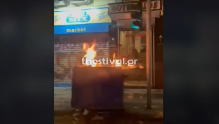 Άγνωστοι πυρπόλησαν κάδους στο κέντρο της Θεσσαλονίκης