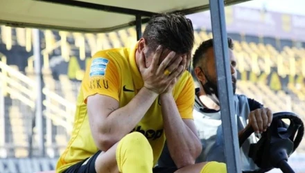Στην προσπάθεια του να απομακρύνει με το κεφάλι, ο αρχηγός του Άρη έπεσε άτσαλα στο έδαφος, προσγειώθηκε με τη μέση και δεν κατάφερε να συνεχίσει.