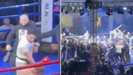 Η ένταση κλιμακώθηκε ραγδαία, με περίπου 50 άτομα να εισβάλλουν στον αγωνιστικό χώρο και να ακολουθεί γενική σύρραξη. Οι διοργανωτές της εκδήλωσης δεν κατάφεραν να αποκαταστήσουν την τάξη, υποστηρίζοντας πως δεν υπήρχε επαρκές προσωπικό ασφαλείας για την αντιμετώπιση τέτοιου περιστατικού.