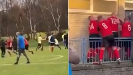 Άγριες σκηνές εκτυλίχθηκαν σε αγώνα ερασιτεχνικού ποδοσφαίρου στη Βόρεια Ιρλανδία, όπου η αναμέτρηση μετατράπηκε σε πραγματική... μάχη, με συνεχείς ανταλλαγές χτυπημάτων τόσο στον αγωνιστικό χώρο, όσο και αργότερα στους διαδρόμους των αποδυτηρίων.