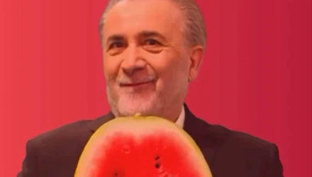 Άλλωστε, το καρπούζι είναι το σήμα κατατεθέν του «Αλ τσαντίρι νιούζ», της εκπομπής που έχει αγαπηθεί από το τηλεοπτικό κοινό.