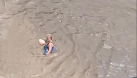 Το περιστατικό συνέβη το περασμένο καλοκαίρι, στη λεωφόρο Ποσειδώνος, όταν κομμάτι δρόμου μετατράπηκε σε λίμνη λόγω της υπερχείλισης αγωγού λυμάτων της ΕΥΔΑΠ, με αποτέλεσμα η γυναίκα να βρεθεί να κολυμπά μέσα σε βρώμικα νερά.
