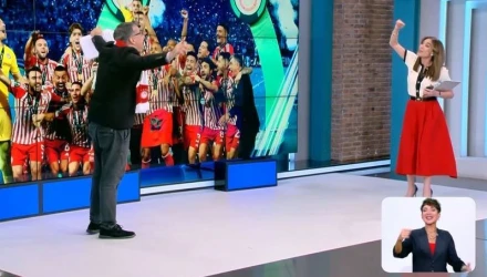 Η παρουσιάστρια του Alpha πανηγύρισε με τον δικό της τρόπο τη μεγάλη επιτυχία του Ολυμπιακού, χορεύοντας live στην εκπομπή της το τραγούδι «Περαία μου, Περαία μου».