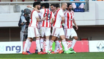 Οι «ερυθρόλευκοι» μπήκαν δυνατά στην αναμέτρηση και στο 10΄ άνοιξαν το σκορ. Ο Τσόρι επιχείρησε το σουτ έξω από την περιοχή, η μπάλα πέρασε κάτω από το σώμα του Μπάρκα (ο οποίος φέρει ευθύνη για το γκολ που δέχτηκε) για το 1-0.