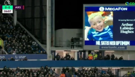 Συγκινητική στιγμή στο Γκούντισον Παρκ, όταν όλο το γήπεδο σηκώθηκε για να αποτίσει φόρο τιμής στον 6χρονο οπαδό της Έβερτον, Άρθουρ ο οποίος δεν κατάφερε να βγει νικητής στην μεγάλη μάχη που έδωσε για να κρατηθεί στην ζωή.