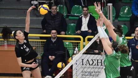 Κακή εκκίνηση έκαναν οι «ασπρόμαυρες» στο παιχνίδι που δεν έβγαλαν αντίδραση σε κανένα σημείο και έχασαν το πρώτο σετ με 25-13. Στο δεύτερο σετ προηγήθηκαν με 2-6 αλλά ο Παναθηναϊκός το έκανε γρήγορα 15-12 και παρά τις λύσεις από διαδοχικά μπλοκ των Κάφρεϊ, Πολυνοπούλου, Κρολ πήρε το σετ με 28-26.