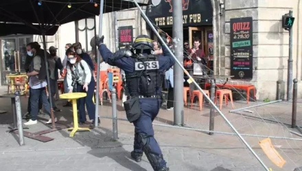 Βίντεο που κάνει το γύρο του διαδικτύου δείχνει αστυνομικούς των ειδικών δυνάμεων να ρίχνουν κάτω άνδρα και να τον αφήνουν αναίσθητο. Η γαλλική αστυνομία δεν απάντησε αργότερα σε αίτημα για σχολιασμό σχετικά με την κατάσταση της υγείας του
