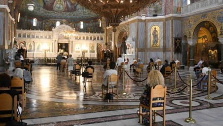 Συγκεκριμένα, θα επιτρέπεται ένας πιστός ανά 25 τ.μ και οι κληρικοί ή οι ψάλτες που θα συμμετάσχουν στη Θεία Λειτουργία θα πρέπει είτε να είναι εμβολιασμένοι είτε να φέρουν αρνητικό αποτέλεσμα από rapid test για κορωνοϊό.
