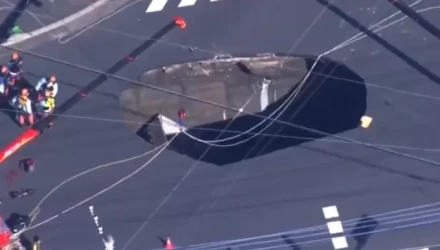 Χθες, καθώς έπεφτε η νύχτα, δεύτερη τρύπα σχηματίστηκε μερικά μέτρα από την πρώτη, μέσα στη μέση σταυροδρομιού, την ώρα που σωστικά συνεργεία έβγαζαν από την πρώτη το ρυμουλκούμενο του φορτηγού, που διαχωρίστηκε από την καμπίνα του οδηγού κάτω από τη γη.