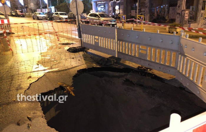 Άνοιξε η γη στη Θεσσαλονίκη: Λακκούβα επτά μέτρων στην Εθνικής Αντιστάσεως
