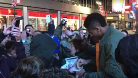 Η αναμέτρηση των Μπακς στη Νέα Υόρκη κόντρα στους Νικς έχει τελειώσει και ο μεγάλος πρωταγωνιστής Γιάννης Αντετοκούνμπο αποχωρεί από το «Μadison Square Garden». Στο πάρκινγκ του γηπέδου και πριν μπει στο πούλμαν της ομάδας, αρκετοί Έλληνες που ζουν στην μεγαλούπολη των ΗΠΑ τον περιμένουν ώστε να πάρουν μια υπογραφή του.