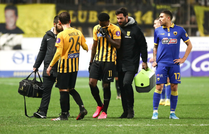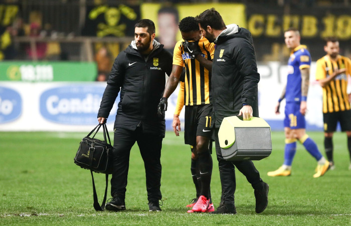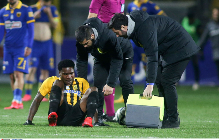 Ο Νιγηριανός επιθετικός του Αρη τραυματίστηκε σε μια φάση στο 36ο λεπτό στον αγώνα με την ΑΕΚ και ήταν για δύο λεπτά κάτω. Μπήκε ο γιατρός των «κιτρίνων» για να του δώσει τις πρώτες βοήθειες αλλά ο Ιντέγε δεν μπορούσε να συνεχίσει.