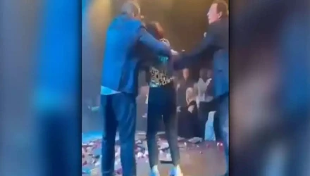 Έπειτα μια από τις κοπέλες που πουλούσαν λουλούδια στο μαγαζί προσπάθησε να τον απομακρύνει αλλά ο έξαλλος θαμώνας την έσπρωξε κι αυτή, την ώρα που ανέβηκαν περισσότερα άτομα στη σκηνή για να ηρεμήσουν τα πνεύματα.