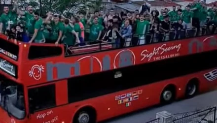 Η νίκη του ΑΟΚ Αγίου Αθανασίου στον τελευταίο αγώνα με αντίπαλο την ΑΕ Αμπελοκήπων με 3-1 σφράγισε την άνοδο των «πρασίνων» και τους οδήγησε στους δρόμους του χωριού να κάνουν βόλτα με ανοιχτό λεωφορείο!