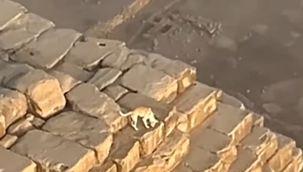 Στο βίντεο φαίνεται ένας σκύλος να περπατάει στο πιο ψηλό σημείο του αρχαίου μνημείου, της μεγαλύτερης πυραμίδας στη νεκρόπολη του Μέμφις.