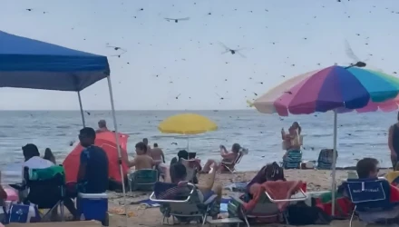 Χιλιάδες λιβελούλες έκαναν την εμφάνισή τους ξαφνικά, στην παραλία Misquamicut στο Westerly το περασμένο Σάββατο (27/7). Τα έντομα σχημάτισαν ένα τεράστιο σύννεφο και άρχισαν να βουίζουν, ενώ στη συνέχεια πέρασαν κάτω από ομπρέλες, καρέκλες, που κάθονταν οι έκπληκτοι από το θέαμα λουόμενοι.