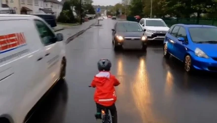 Ο ραδιοφωνικός παραγωγός και δεινός ποδηλάτης, Τζέρεμι Βάιν, ανέβασε στο Διαδίκτυο το σχετικό βίντεο που δείχνει τον μικρό να κάνει βόλτα με το ποδήλατό του και τα αυτοκίνητα να περνούν δίπλα του με ταχύτητα.