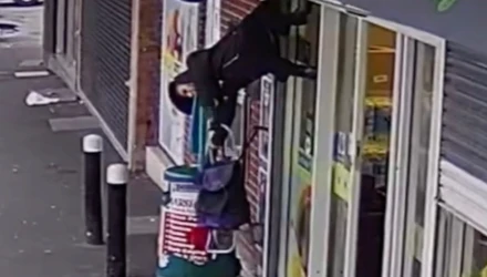 Την απίστευτη στιγμή που μια ηλικιωμένη βρέθηκε στον αέρα καθώς το μπουφάν της πιάστηκε στα ρολά καταστήματος, κατέγραψε η κάμερα.