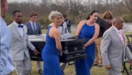 Οι καλεσμένοι έμειναν με το στόμα ανοικτό όταν είδαν μια νεκροφόρα να καταφθάνει και μέσα από αυτή βγήκε ένα φέρετρο το οποίο κουβαλούσαν φίλοι του ζευγαριού, με τον γαμπρό να βρίσκεται μέσα. Σίγουρα ο άνδρας ήθελε να περάσει ένα μήνυμα... το θέμα είναι πως τον αποδέχτηκε η σύντροφός του.
