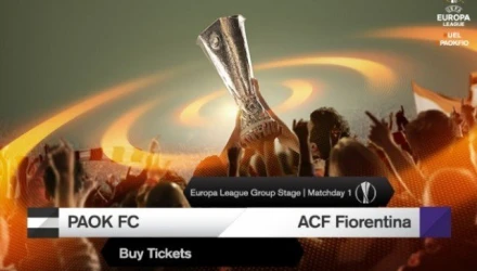 «Η ΠΑΕ ΠΑΟΚ ανακοινώνει ότι την Τρίτη (6/9) θα ξεκινήσει η προπώληση συγκεκριμένου αριθμού εισιτηρίων του αγώνα ΠΑΟΚ–Φιορεντίνα για την 1η αγωνιστική της φάσης των ομίλων του Europa League, που θα διεξαχθεί την Πέμπτη (15/9, 22:05), μόνο μέσω της επίσημης ιστοσελίδας μας.