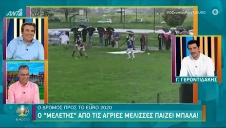Ο "Μελέτης" από τις Αγριες Μέλισσες παίζει μπάλα και φαίνεται ότι το κάνει καλά, σύμφωνα με τα όσα προβλήθηκαν στην ειδική εκπομπή του ANT1 με αντικείμενο το EURO 2020 που θα διεξαχθεί το φετινό καλοκαίρι.