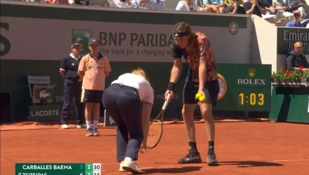 Ο 24χρονος τενίστας διέκοψε μια φάση, υποστηρίζοντας πως το χτύπημα του αντιπάλου του ήταν εκτός γραμμής κι ανάγκασε τη διαιτήτρια να κατέβει από τη θέση της.