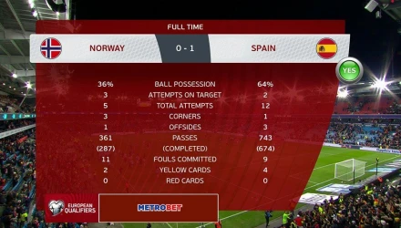 21:45 – Νορβηγία - Ισπανία - 2 – 2,05 - ΣΚΟΡ : 0-1