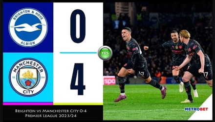 22:00- Μπράιτον – Μάντσεστερ Σίτι – Οβερ 2,5 - 1,45 - ΣΚΟΡ : 0-4