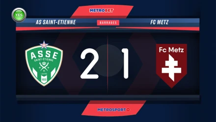 21:30- Σεντ Ετιέν - Μετς – Χ - 3,46 - ΣΚΟΡ : 2-1