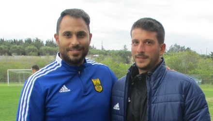 Στην πρεμιέρα του Πρωταθλήματος της Α κατηγορίας ο Αρης νίκησε εκτός έδρας τον Εθνικό Πυλαίας μια από τις δυνατές ομάδες της κατηγορίας με 2-0 έχοντας ως σκόρερ τον Τανούλη. Στο φωτογραφικό στιγμιότυπο Κώστας Καζάνας και Μιχάλης Σαλέπης.