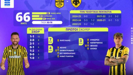 «Η ΑΕΚ δεν έχει ηττηθεί στις επτά τελευταίες επισκέψεις της στην έδρα του Άρη για το πρωτάθλημα και το Κύπελλο Ελλάδος, όπου υπάρχουν τέσσερις ισοπαλίες και τρεις νίκες της ομάδας της Αθήνας. Στη μία από αυτές, στην αναμέτρησή τους για το Κύπελλο Ελλάδος στις 17 Ιανουαρίου 2024, υπήρξε ισοπαλία 1-1 στην κανονική διάρκεια της αναμέτρησης, και ο Άρης πήρε την πρόκριση με 5-3 στη διαδικασία των πέναλτι.