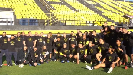 Με τούρτα, βεγγαλικά, μπλουζάκια που φορούσαν όλα τα μέλη των «κιτρινόμαυρων» για τη σημερινή μέρα και με βασικό σύνθημα το «χρόνια πολλά, αγάπη μου γλυκιά» το πάρτι μεταφέρθηκε και στον αγωνιστικό χώρο του «Κλεάνθης Βικελίδης»!