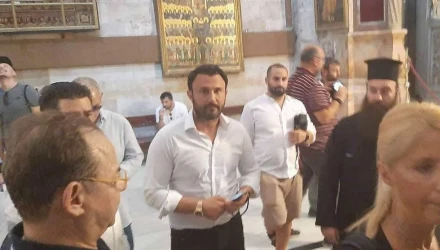 Ο ισχυρός άνδρας της ΠΑΕ Άρης αλλά και πολλοί ακόμη Έλληνες, φίλοι του Άρη που βρίσκονται στο Ισραήλ, επισκέφτηκαν τον Πανάγιο Τάφο στην Ιερουσαλήμ. Μάλιστα ο Θόδωρος Καρυπίδης είχε συνάντηση και με τον Πατριάρχη. Μάλιστα οι άνθρωποι του Άρη έκαναν στον Πατριάρχη δώρο μια φανέλα του Άρη με τις υπογραφές όλων των παικτών