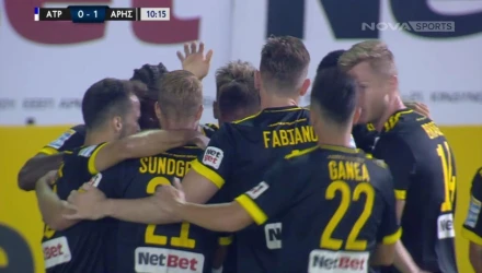Ο Άρης προηγήθηκε 1-0 του Ατρόμητου στο Περιστέρι, στο 10ο λεπτό της αναμέτρησης.